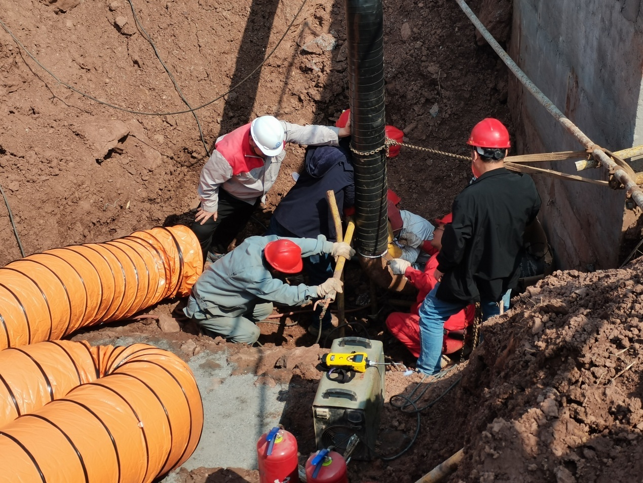 年產(chǎn)30萬噸瀝青混凝土配套天然氣直供站動火連頭施工,連接氣源屬安徽省皖能港華天然氣有限公司投資建設(shè)的宣寧黃干線天然氣管道。因該分部分項工程屬危大工程,集團公司高度重視,先后協(xié)助子公司(黃山綠洲新型建筑材料有限公司)完成了《年產(chǎn)30萬噸瀝青混凝土配套天然氣直供站動火連頭施工方案》、《管道動火連頭應(yīng)急預(yù)案》的評審工作,并在2021年12月24日,參與了自備直供氣站動火連頭應(yīng)急組織動員會,先后協(xié)助配合子公司完成了相關(guān)保障工作,加強了集團公司對危大工程的風(fēng)險管控,完善了應(yīng)急救援組織體系。