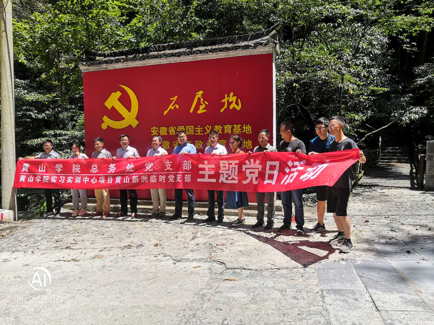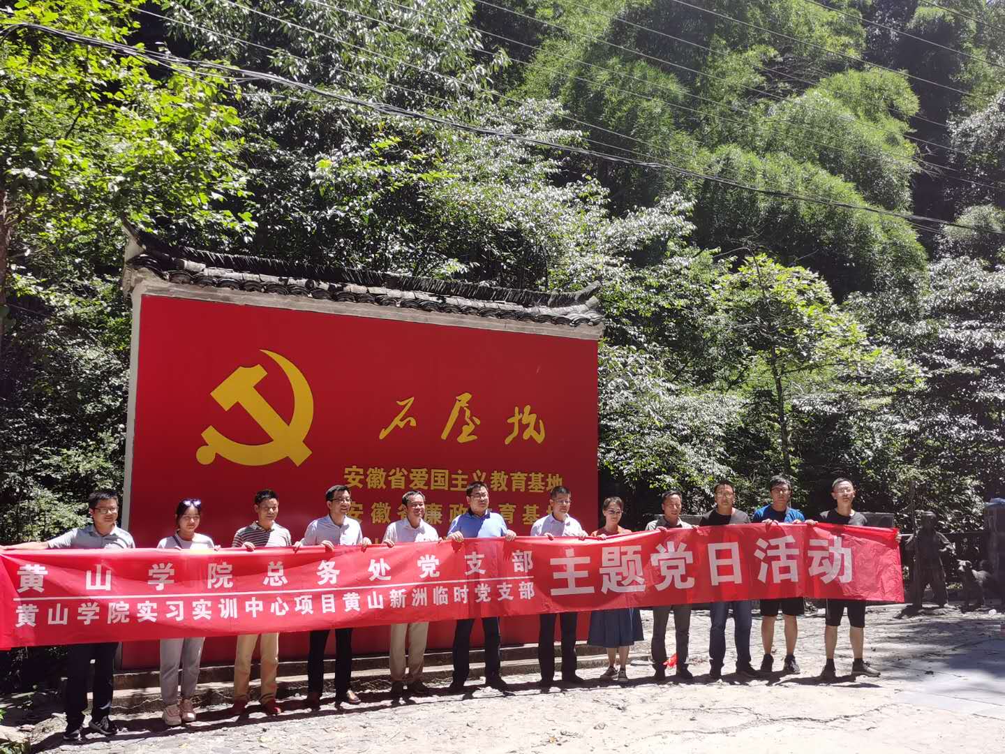 紀念中國共產(chǎn)黨成立99周年,重溫黨的光輝歷史,發(fā)揚黨的光榮傳統(tǒng),本著“以共建促黨建,以共建促了解,以共建促合作,以共建促發(fā)展”的原則,8月18日,黃山學院總務處黨支部和我公司黨支部聯(lián)合開展“校企共建 協(xié)同發(fā)展”主題黨日活動,總務處、黃山新洲黃山學院實習實訓中心項目臨時黨支部全體黨員同志參加活動。石屋坑村長陪同全程講解。